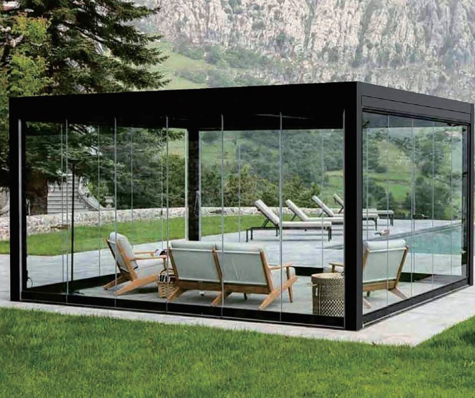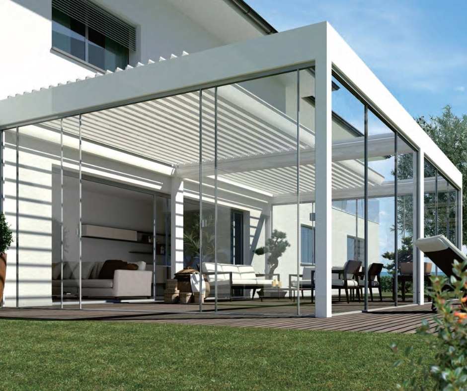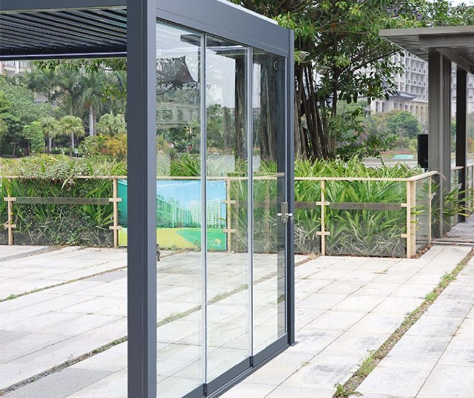 Glass sliding panels are a great way to enhance the elegance of your EZ Cover™ Pergola.