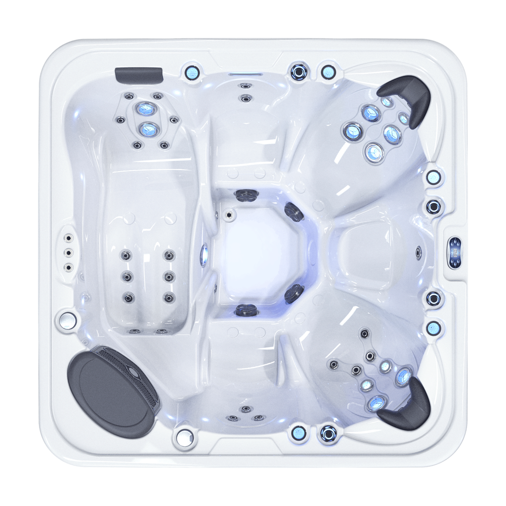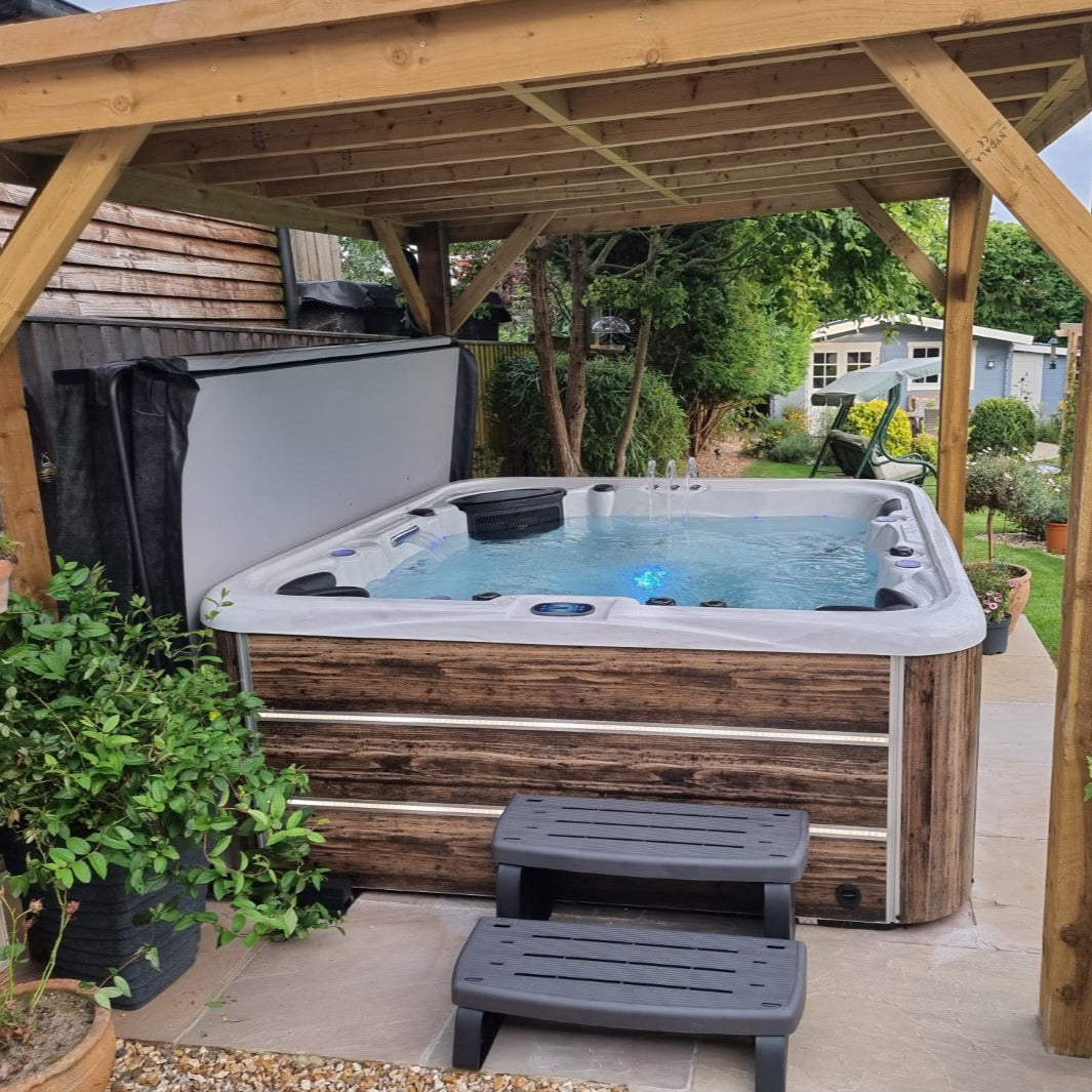 Dual pumps deliver a powerful massage experience, while premium features like a Bluetooth™ music system, Balboa™ controls, LED lighting, UV sanitation, and water rope fountains ensure ultimate relaxation. Built with a durable aluminium frame and superior insulation for maximum efficiency.